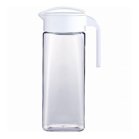 ハンドル付き麦茶ポット。冷蔵庫内のスペースを効率的に使える角型。奥行が2Lペットボトルと同等サイズで冷蔵庫ドアポケットに収納できる。