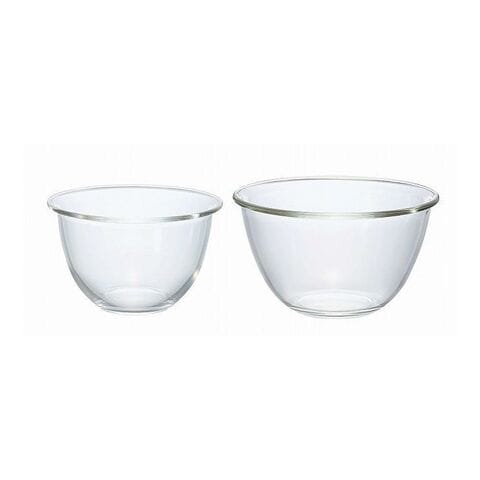 耐熱ガラス製のボウルの2個セット。混ぜやすく周りを汚しにくい深型形状。