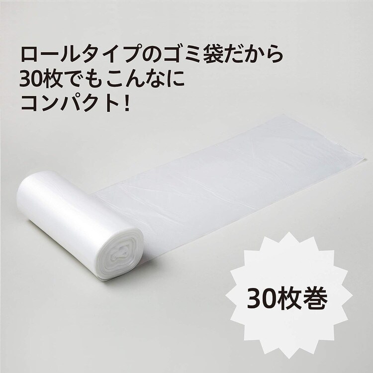 【使い方】1.ロールから袋を引き出しゴミ箱に装着します。 2.ゴミがいっぱいになったら・・・ 3.袋を持ち上げて、ミシン目で切り離します。 4.次の袋を引き出し、再び装着します。サッと完了!