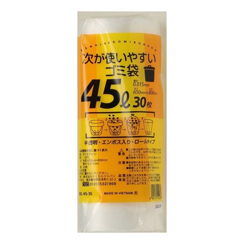 【3個セット】 次が使いやすいゴミ袋 ごみ袋 つながって出てくる 半透明 ゴミ袋 45L 使い捨てHDRE4530【送料無料】