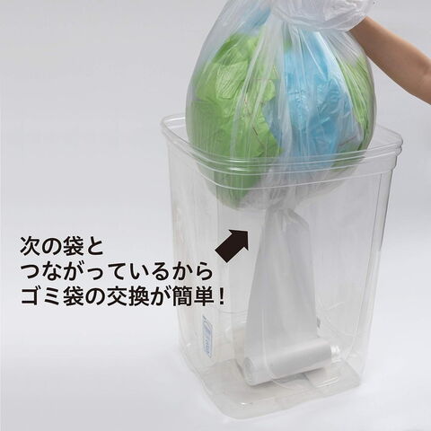 リビングで、寝室で、キッチンで。ゴミ箱の底に入れておいて、ゴミ袋の取り替えを一気に時短。 ゴミ袋の収納場所は、使うゴミ箱の中。わざわざ棚や引き出しにゴミ袋の収納場所を準備する必要なし。