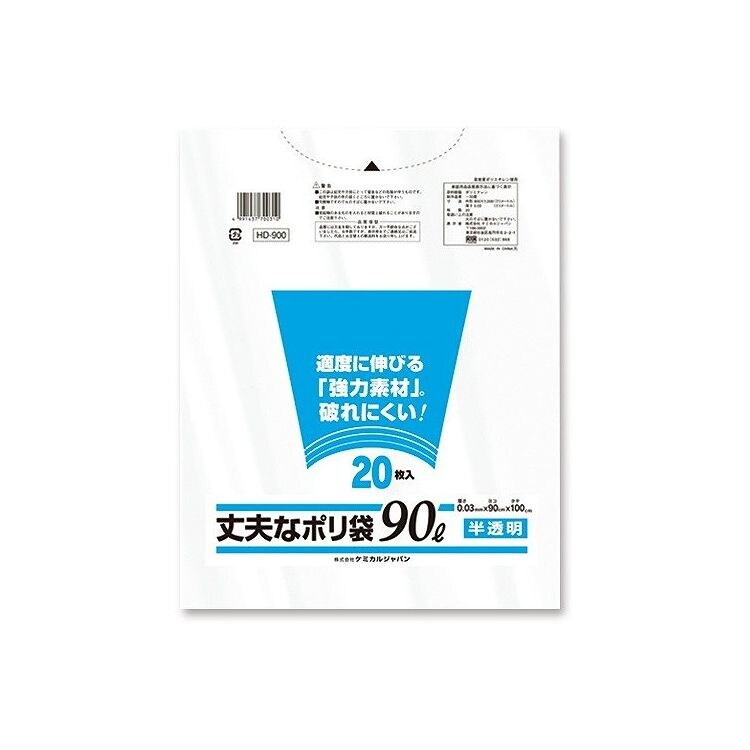【2個セット】 ケミカルジャパン 丈夫なポリ袋 90L 半透明 20枚 HD-900【送料無料】