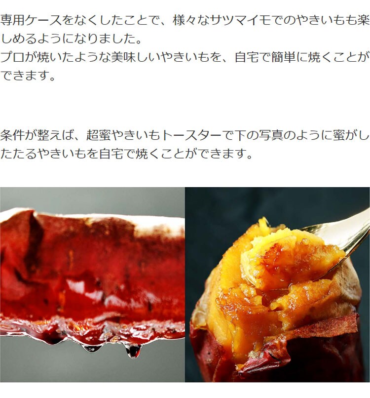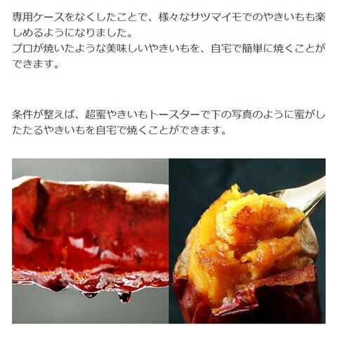 ●やきいも好きのためのトースターとして人気の『超蜜やきいもトースター』がバージョンアップ!機能はそのままに、専用ケースを使わずより簡単に焼けるよう改良。