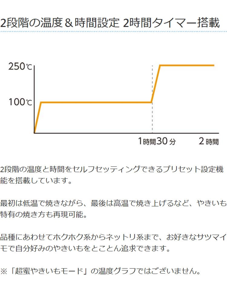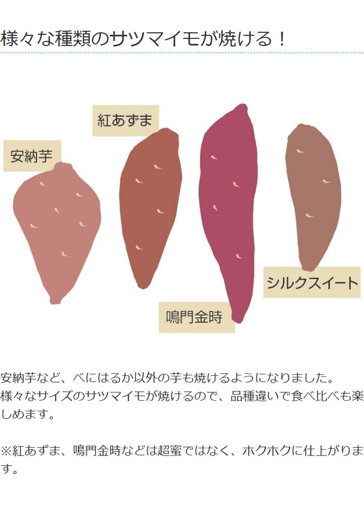 ●プロが焼いたような美味しいやきいもを、自宅で簡単に焼くことができます。