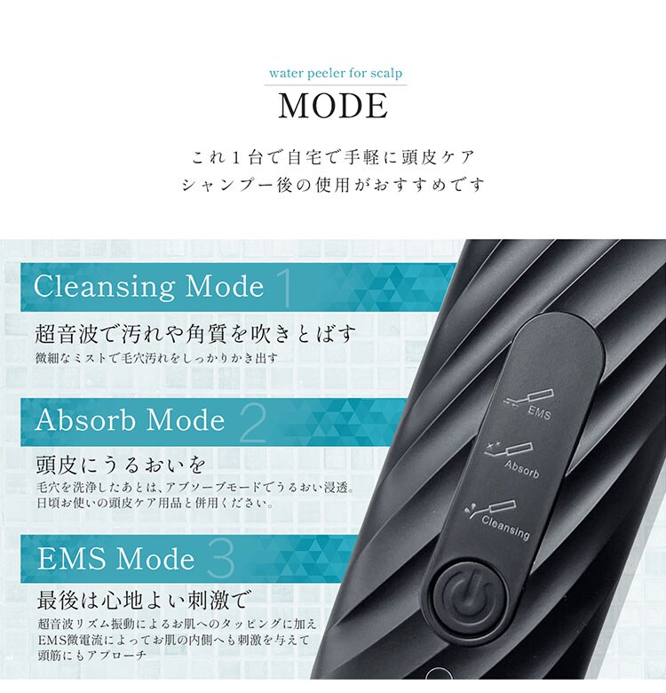 頭皮用 ウォーターピーラー 超音波洗浄 EMS 頭皮ケア X03RB-001BK【送料無料】