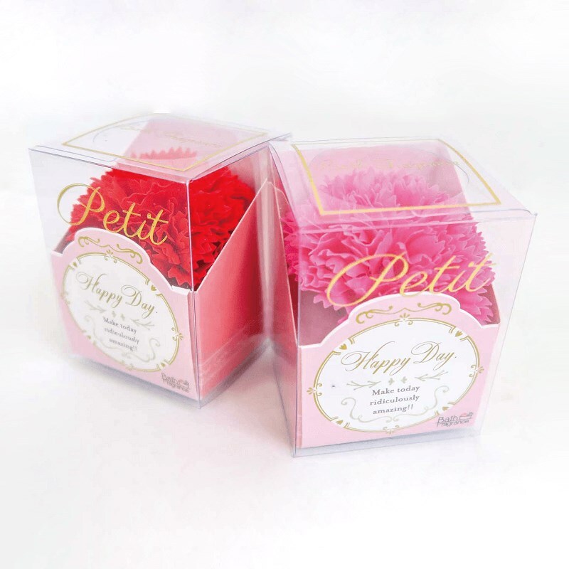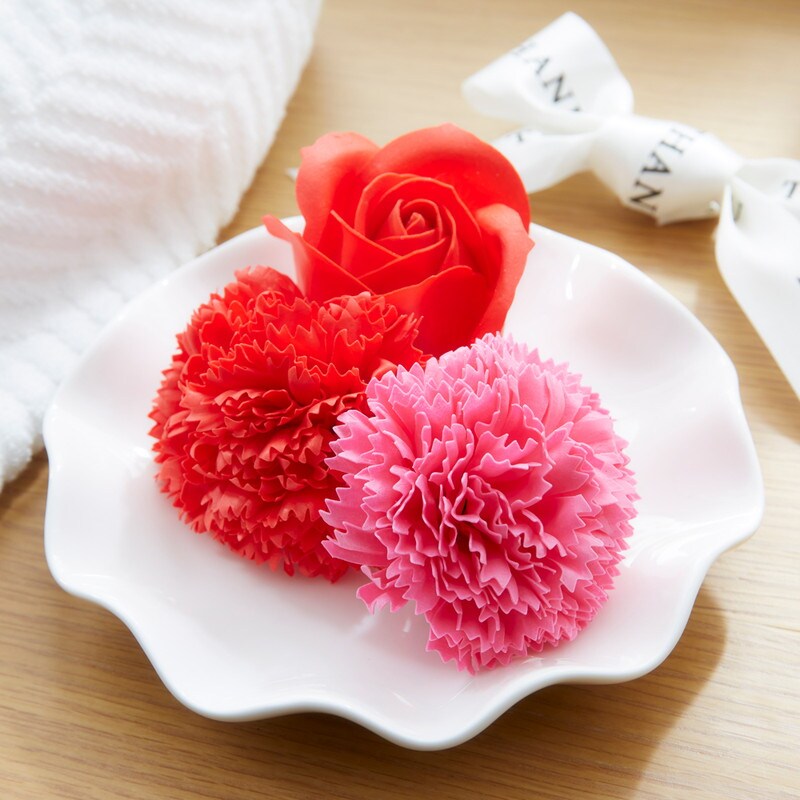 まるで生花のようなディテール。彩りやアクセントとして飾る空間を演出します。飾って、香って、お風呂で楽しめる「花のカタチの入浴剤」です。小さいフォルムなのにボリューム満点のカーネーションとローズ。