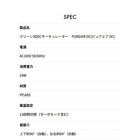 製品名:クリーン3DDCサーキュレーター PUREAIR DC(ピュアエア DC)