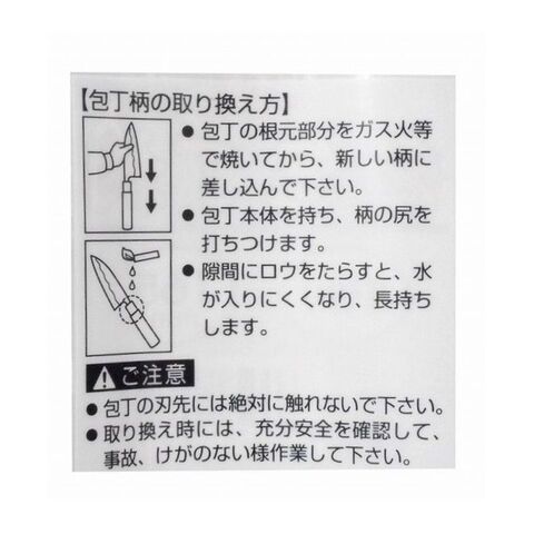 取替方法1:包丁の根本部分をガス火等で焼き、新しい柄に差し込む