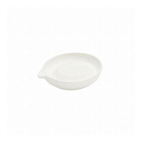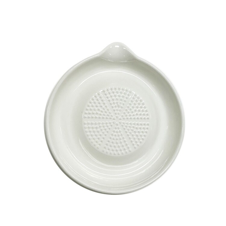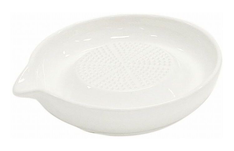 おろし器、陶器、セラミック、白、皿、わさび、にんにく、ガーリック、生姜、しょうが、レモン、薬味、洗いやすい、色移り、コンパクト、小型、細かく、細目、手動、力いらない、丸型