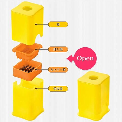 本体、フタ:ポリプロピレン(耐熱温度60度)押板、カッター部(枠):ポリプロピレン(耐熱温度110度)刃部:ステンレス鋼
