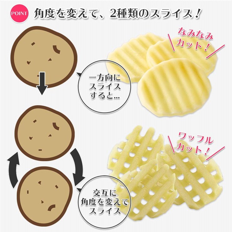 なみ形とワッフル形の2種類スライスが可能です。