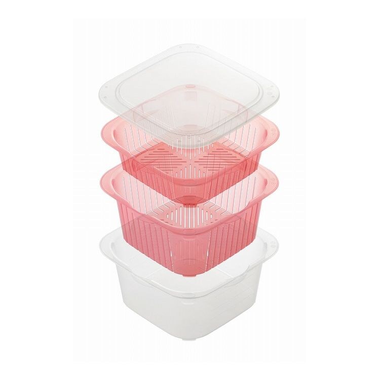 サイズ(約):【収納時】D163×W163×H105mm 【フタ】D163×W163×H10mm 【浅ザル】D160×W160×H50mm 【深ザル】D160×W160×H75mm 【ボウル】D160×W160×H75mm