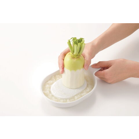 シャープな切れ味のおろし目部と底面滑り止めで、片手でも楽にすりおろせます。