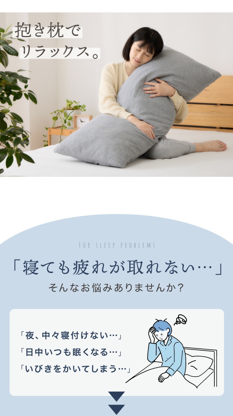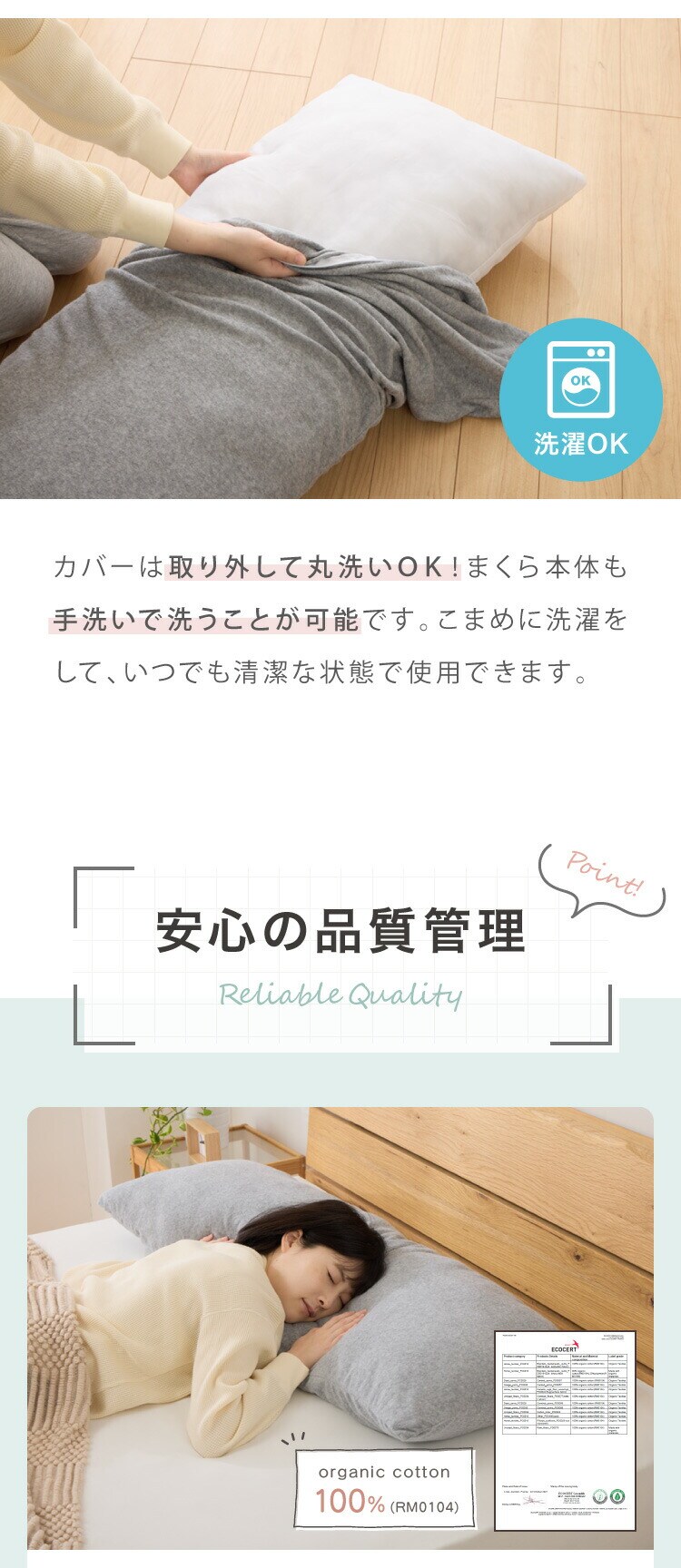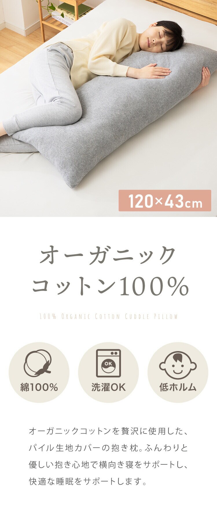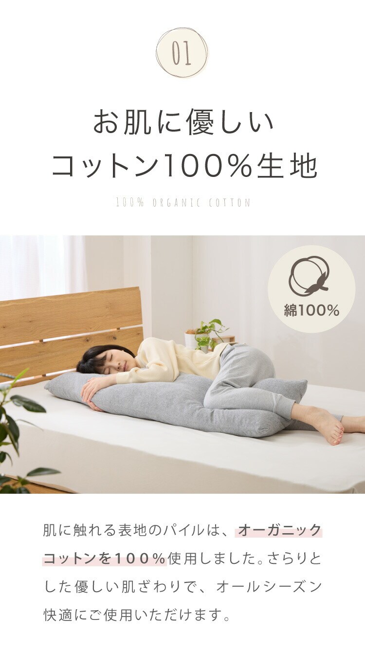 抱き枕、綿100%、オーガニックコットン、洗える、抱きまくら、枕、ボディーピロー、安眠、横向き寝、うつ伏せ、マタニティ、妊婦、プレゼント、クッション、ギフト、男性、女性、横向き寝