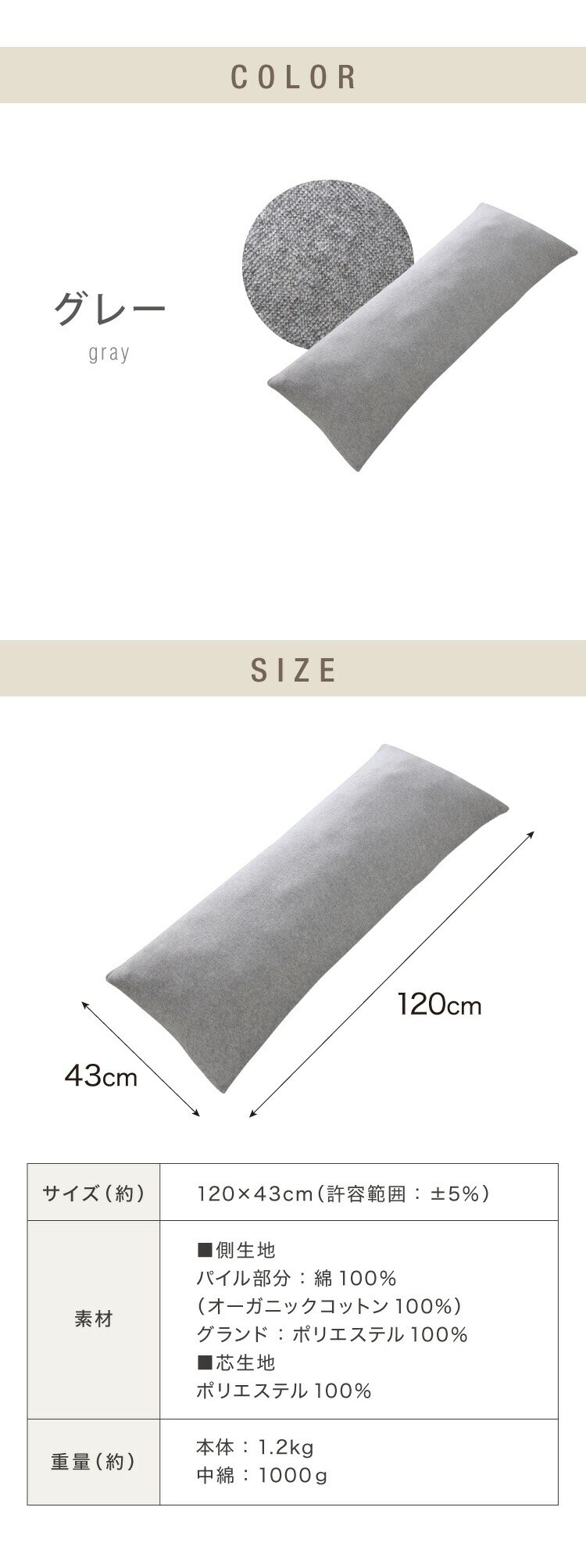 抱き枕 ストレート 妊婦 綿100% オーガニックコットン 120×43cm 洗える 大きい ロングピロー 抱き枕 枕 ボディピロー 安眠 うつ伏せ マタニティ 柔らかい 快眠 プレゼント クッション ギフト【送料無料】