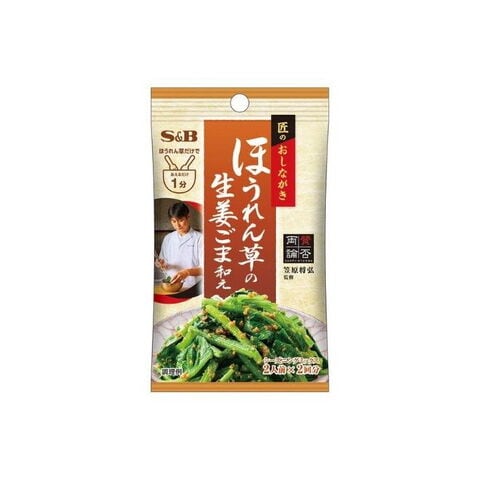 日本料理の人気店、「賛否両論」店主 笠原将弘監修のメニュー用シーズニング。茹でたほうれん草と和えるだけ。香ばしくコクのあるごまに、爽やかな生姜の風味がアクセント。