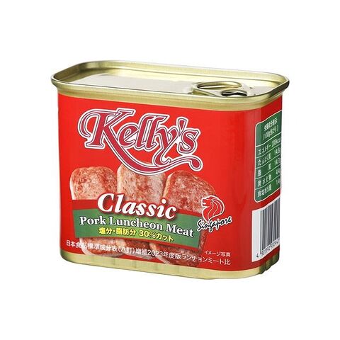 シンガポール産の「Kelly’s ランチョンミート」。豚肉の中でも赤身の多い肩とモモの部位を使用しており、上品な味わいを感じられます。脂肪分が少ないため、そのまま召し上がっても、サッと焼いても美味しく、朝やお弁当などに最適です。