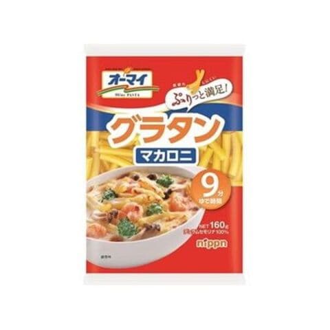 オーマイマカロニが手に取りすい160gになって新登場。スリムパッケージで陳列性もアップしました。煮崩れしにくくグラタンにおすすめの定番マカロニです。