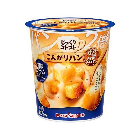 こんがり焼き上げたひとくちサイズのパンの量がいつもの2倍*入った、食べごたえ抜群なパンが主役の濃厚クラムポタージュ。超盛シリーズはブランド史上最高のパン量なので主食としても楽しめます。*通常品との比較