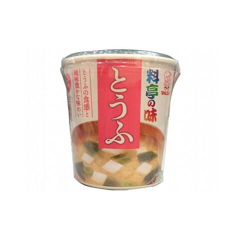 調味みそ[米みそ(国内製造)、食塩、砂糖、豆みそ、かつおエキス、昆布エキス、かつお節粉末、宗田かつお節粉末、いわし煮干粉末、かつお節エキス、還元麦芽糖/酒精、調味料(アミノ酸等)、(一部に大豆を含む)]具[とうふ、わかめ、ねぎ、かつお節粉末/調味料(アミノ酸等)、凝固剤、(一部に大豆を含む)]