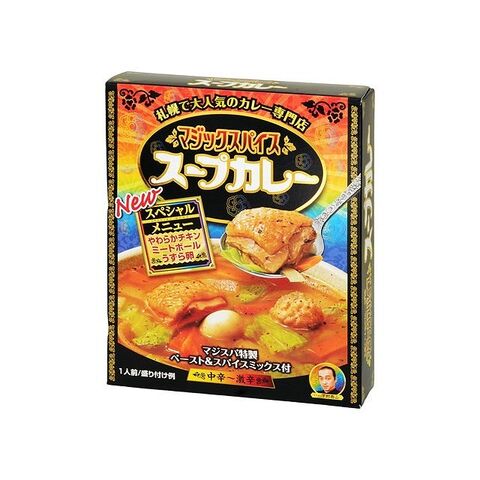 マジックスパイススープカレーの味を家庭でも楽しめる、レトルトタイプのスープカレーです。マスター下村泰山氏が監修した、信頼の品質です。マジスパ特製ペースト&スパイスミックス付きで、辛さ自由です。