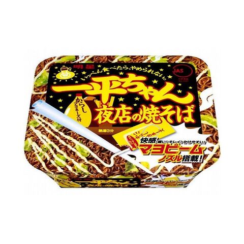 コクのある濃厚ソースと香ばしい麺がやめられないおいしさの焼きそばです。さらに定番のからしマヨネーズに新機能「マヨビーム・ノズル」を搭載し、誰でも細く、キレイにかけやすくなりました。