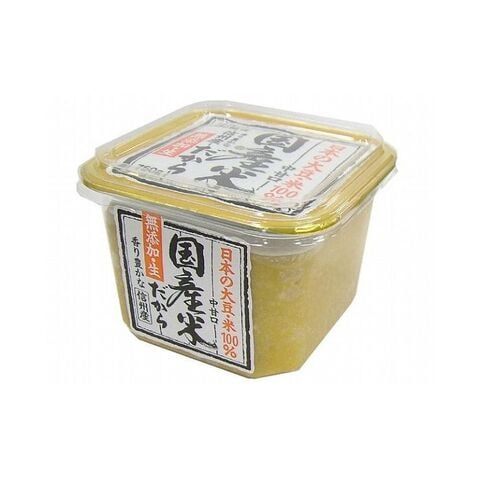 国産大豆。国産米を使用。白麹特有の旨味・甘味を醸し出し、加熱をしない中甘口の無添加生みそです。