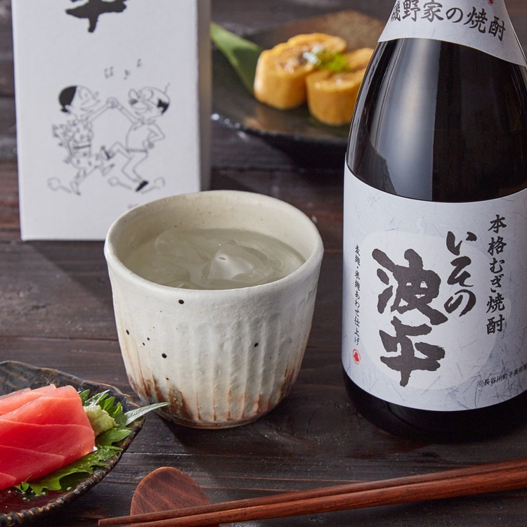 原材料は麦焼酎造りに最適な大麦を使用。麦麹で仕込んだ原酒と米麹で仕込んだ原酒の2種類をブレンドすることにより、スッキリとした味わいに、麦焼酎本来のコクを引き出した奥深い仕上がりとなっています。口当たりの良さと、フルーティな香りが特徴の本格むぎ焼酎です。本格焼酎「いその波平」(芋)に続く、シリーズ第2弾です。