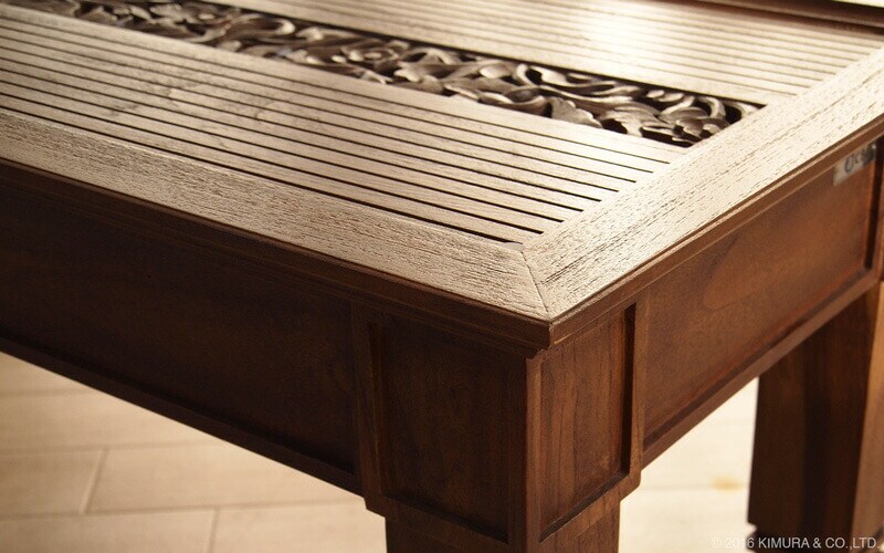 テーブルの上部には手彫の彫刻を施した高級感溢れるデザインのテーブルです。