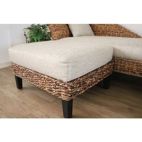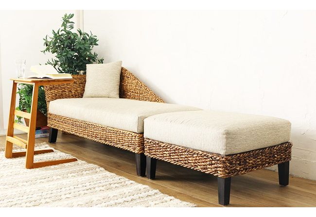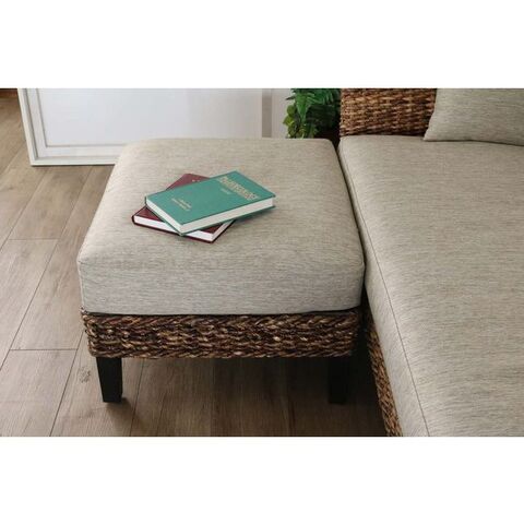 アメ色にいぶしたバナナの葉を編み込んだナチュラルテイストのオットマン。