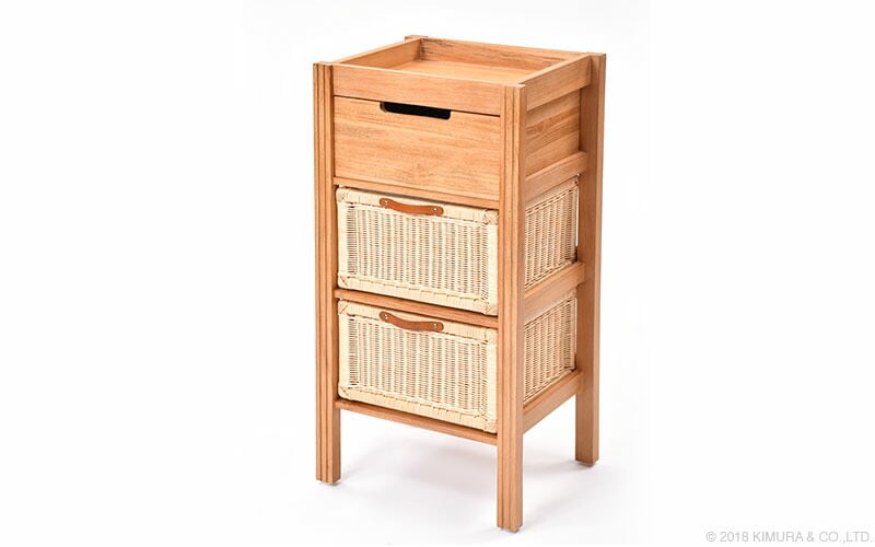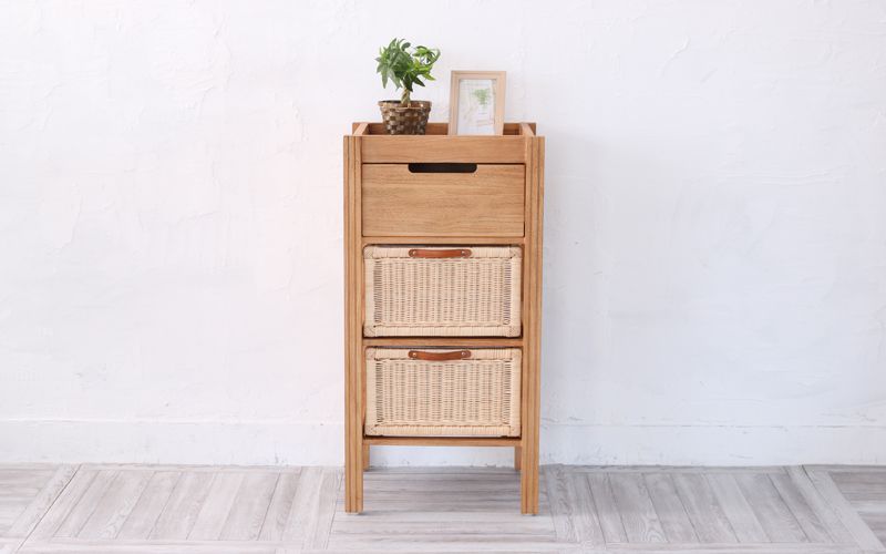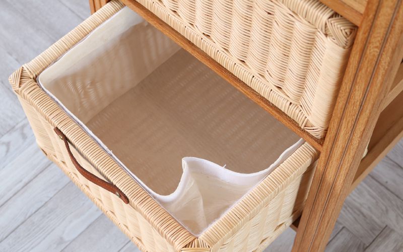 引出はラタン製バスケットのため、通気性が良く衛生的です。
