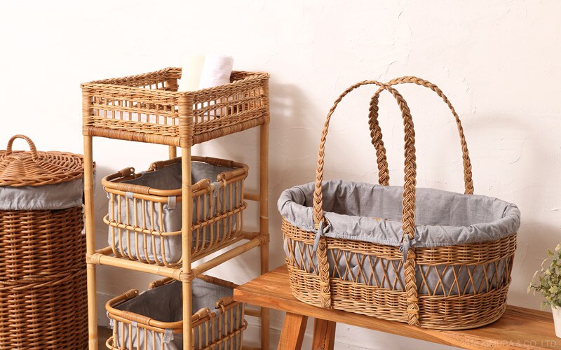 | 材質 | ラタン(籐)、内布 ※内布は洗濯すると縮むことがあります。 |