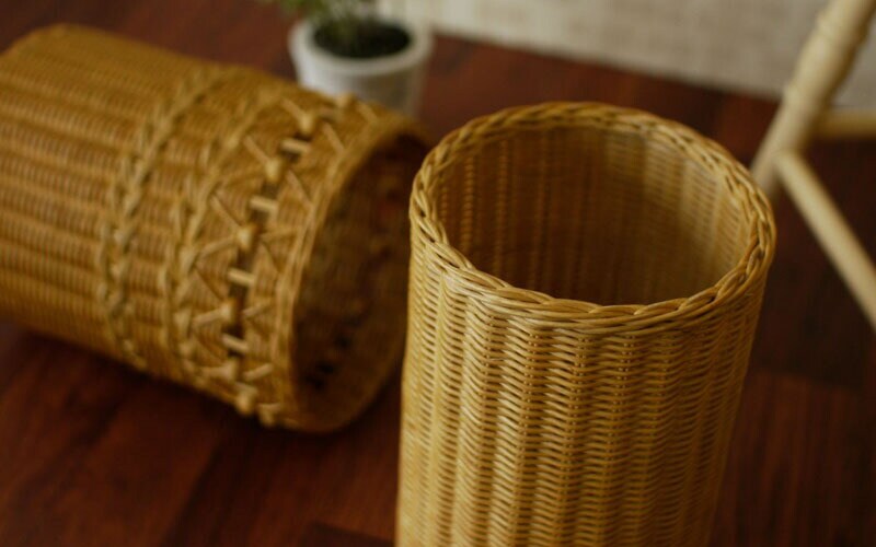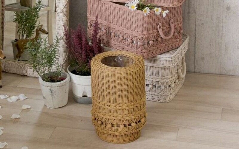 華やかでかわいらしいラタン製ダストボックス。