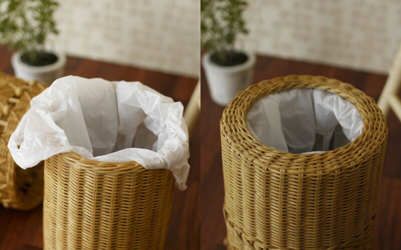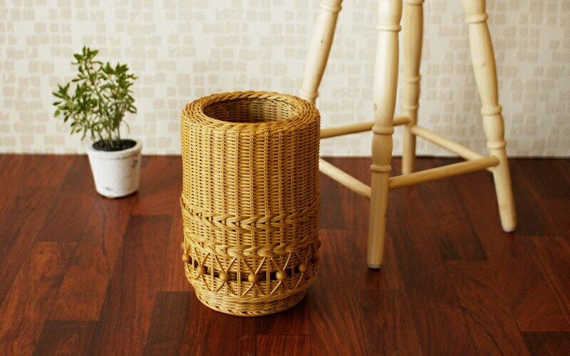 ポイント 華やかでかわいらしいラタン製ダストボックス。