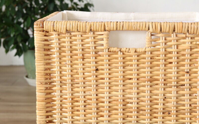 | 材質 | ラタン(籐)、天然木、綿 ※内布は水洗いをすると色落ちや縮む恐れがあります。 |