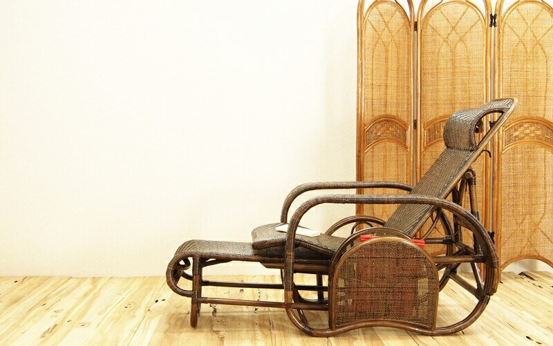 ゆったりとした優雅な時間を過ごせるラタン製リクライニングチェア。