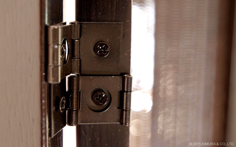 両側に折り曲げる事ができる蝶番を採用し空間に合わせて自由な角度で設置することができます。