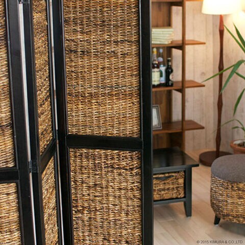 バナナリーフ スクリーン 4連 パーテーション 間仕切り 目隠し 完成品 組み立て不要 仕切り 衝立 ついたて 寝室 アバカ ウォーターヒヤシンス アジアン アジアン家具 おしゃれ エスニック アンティーク 和室 照明 和風【送料無料】
