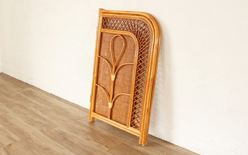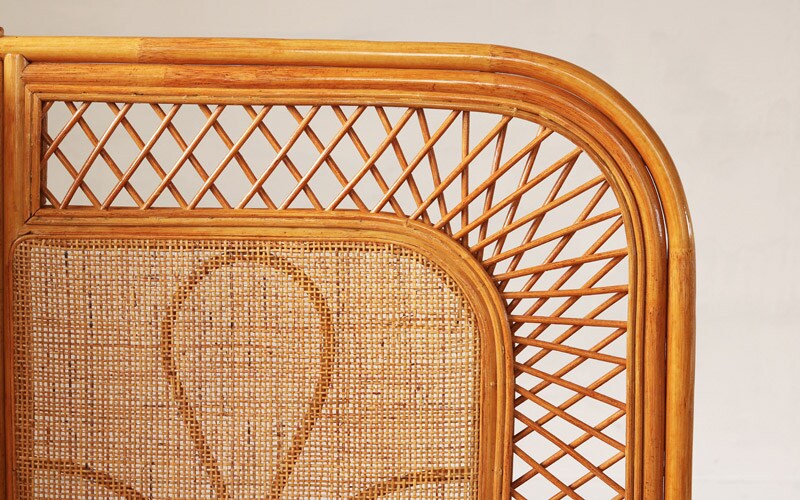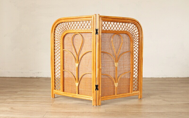 通気性の良いラタン製衝立。2連折りたたみ式。