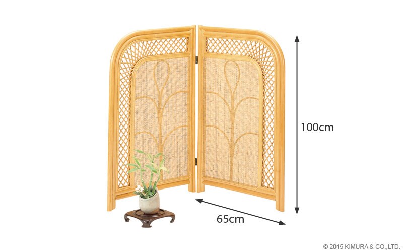 | ポイント | 通気性の良いラタン製衝立。2連折りたたみ式。 お部屋の間仕切りや目隠し、日差しよけに様々なシーンで大活躍。 中央の飾り編みがデザインのアクセントに。 軽いので移動も楽々。 収納時はコンパクトに折りたため、場所をとりません。 天然素材でホッと安らぎの空間に。 |