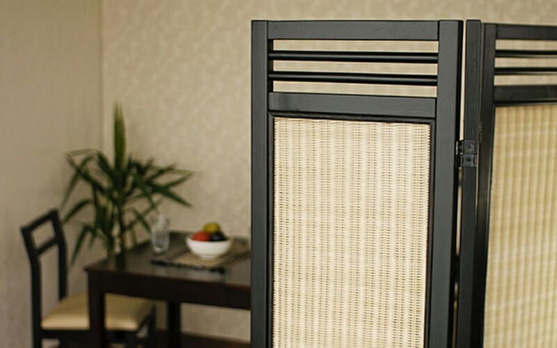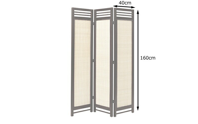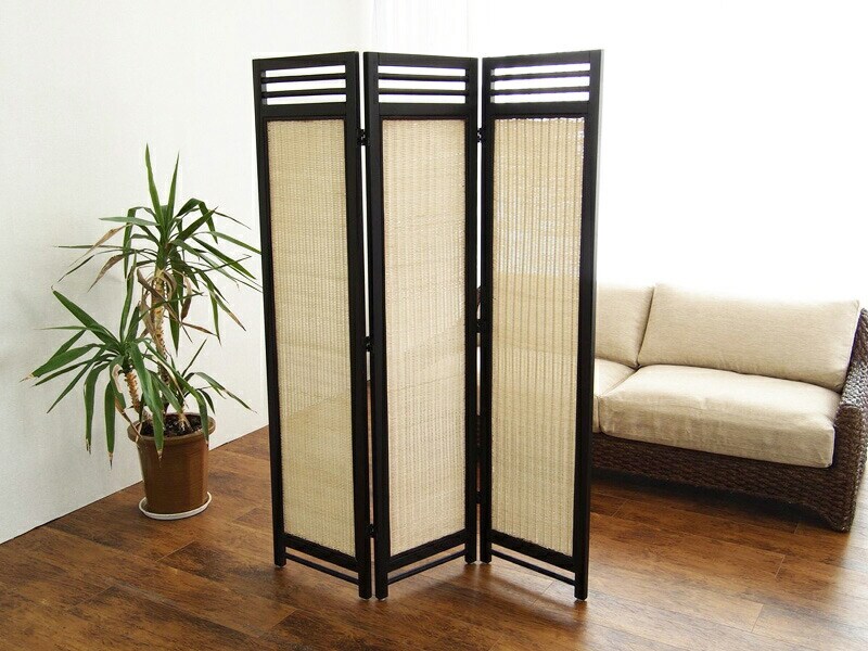 天然木のフレームにラタンの編み込みが美しいスクリーン。3連タイプ。
