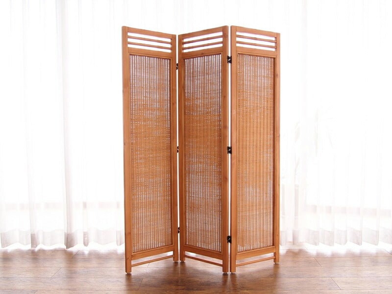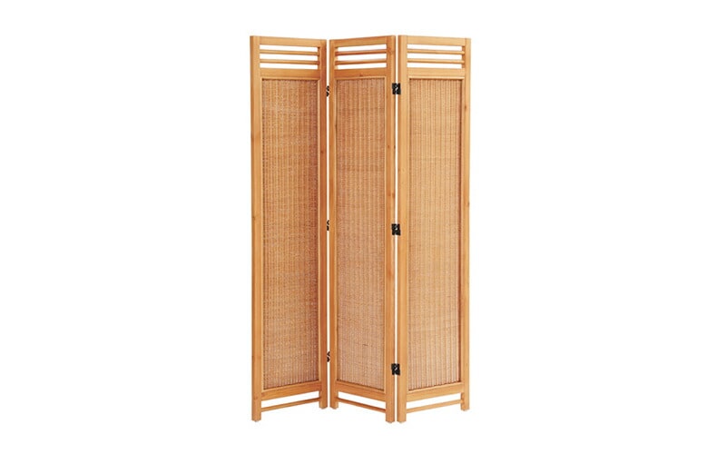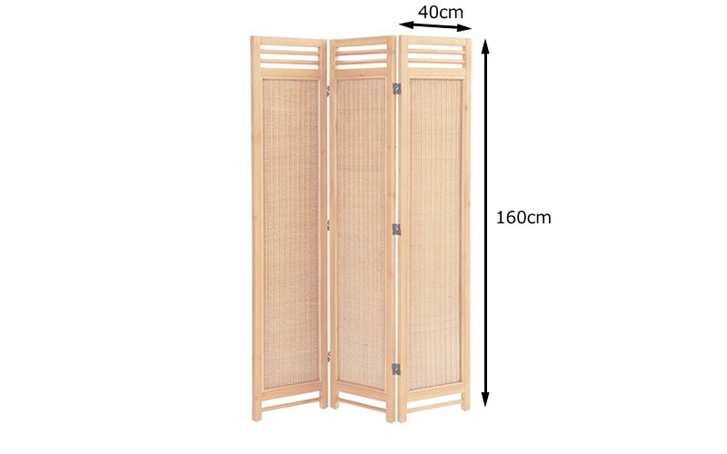 天然木のフレームにラタンの編み込みが美しいスクリーン。3連タイプ。