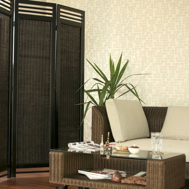 天然木のフレームにラタンの編み込みが美しいスクリーン。4連タイプ。