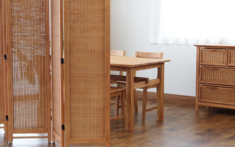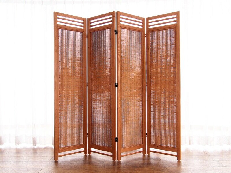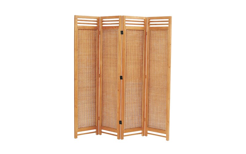天然木のフレームにラタンの編み込みが美しいスクリーン。4連タイプ。