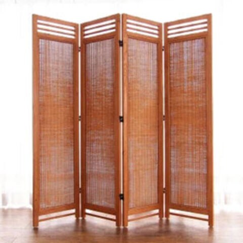 ポイント 天然木のフレームにラタンの編み込みが美しいスクリーン。4連タイプ。