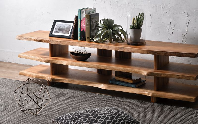 世界三大銘木のチーク無垢材を使用。 木本来の形をそのまま活かしたテレビボードです。 自然素材家具ならではの、やわらかく手に馴染みやすい感触。 月日が経つ程風合いが増す、無垢木製インテリアならではの味わいををお楽しみいただけます。