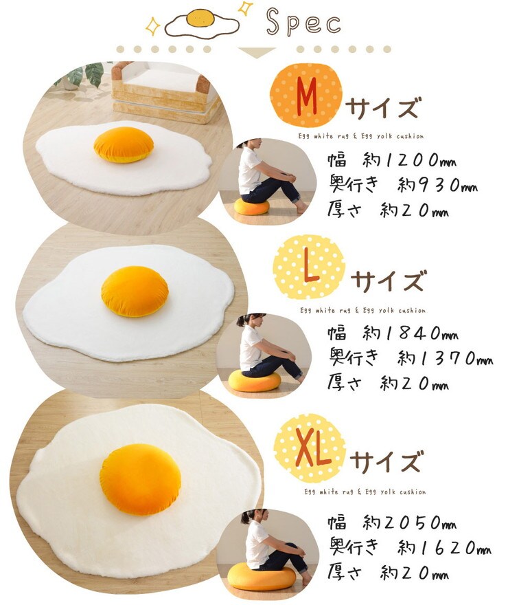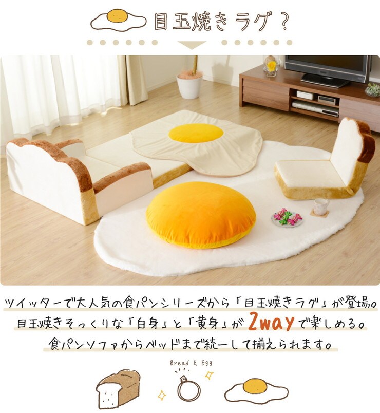 目玉焼きラグマット Mサイズ 黄身クッション 白身ラグマットの2点セット 食パンシリーズ【送料無料】