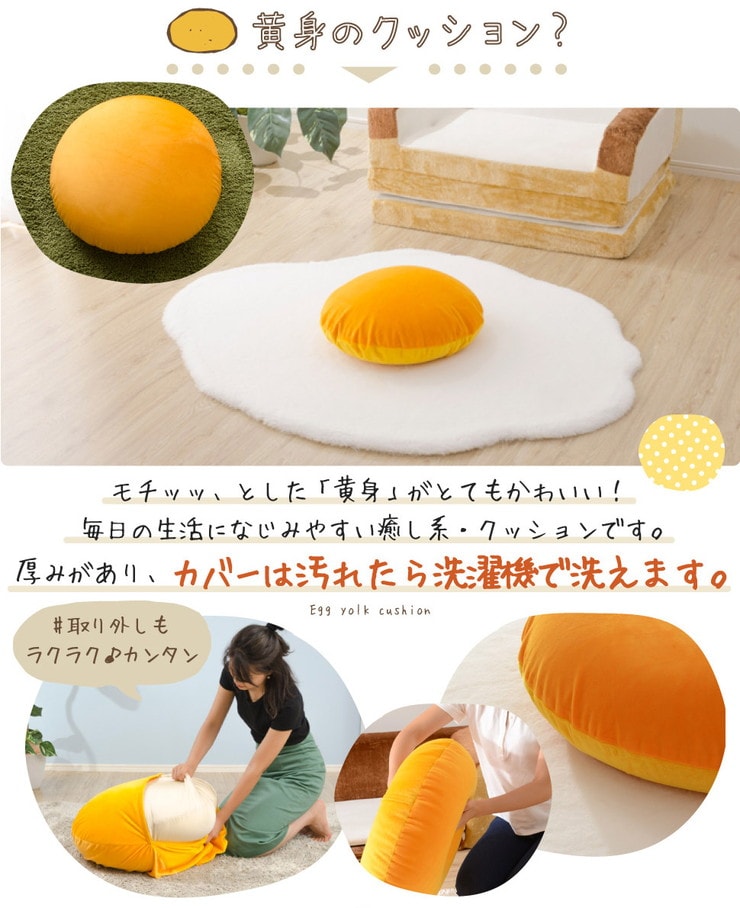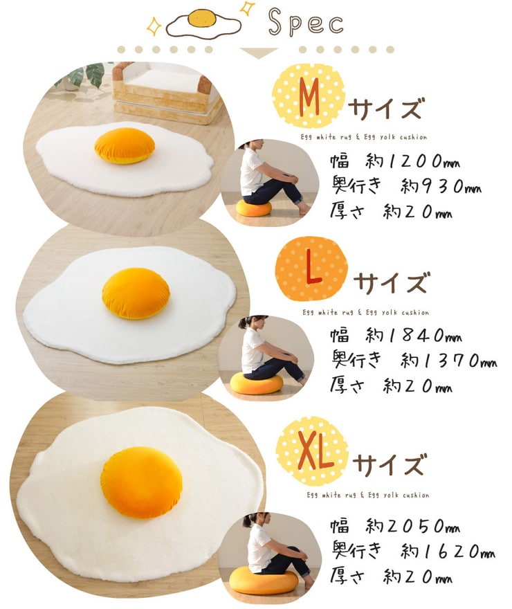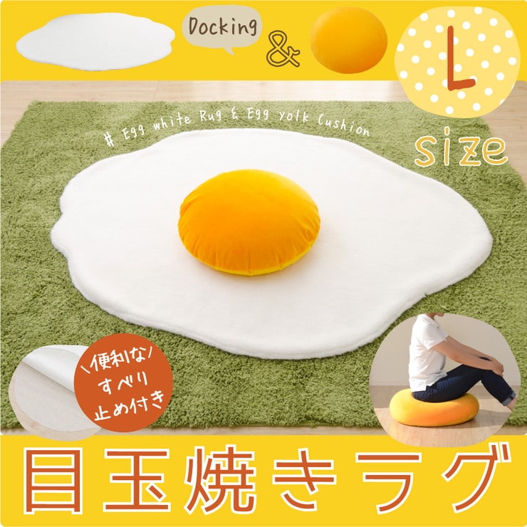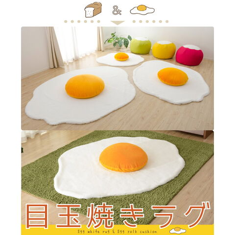 目玉焼きラグマット Lサイズ 黄身クッション 白身ラグマットの2点セット 食パンシリーズ【送料無料】