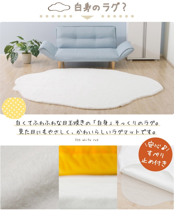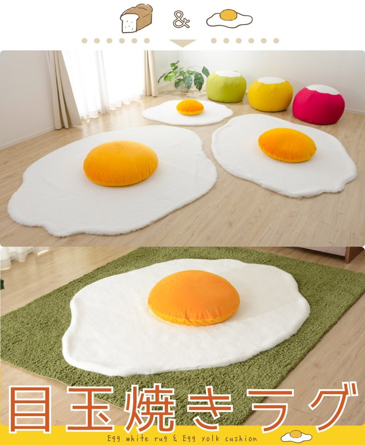 食パンシリーズのクッションにたまごの白身のかわいいラグマットが登場。