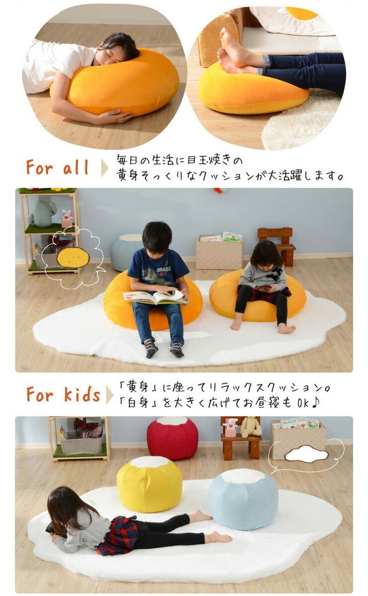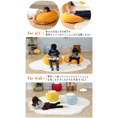 目玉焼きラグマット(黄身クッションLサイズ+白身ラグマットLサイズ)